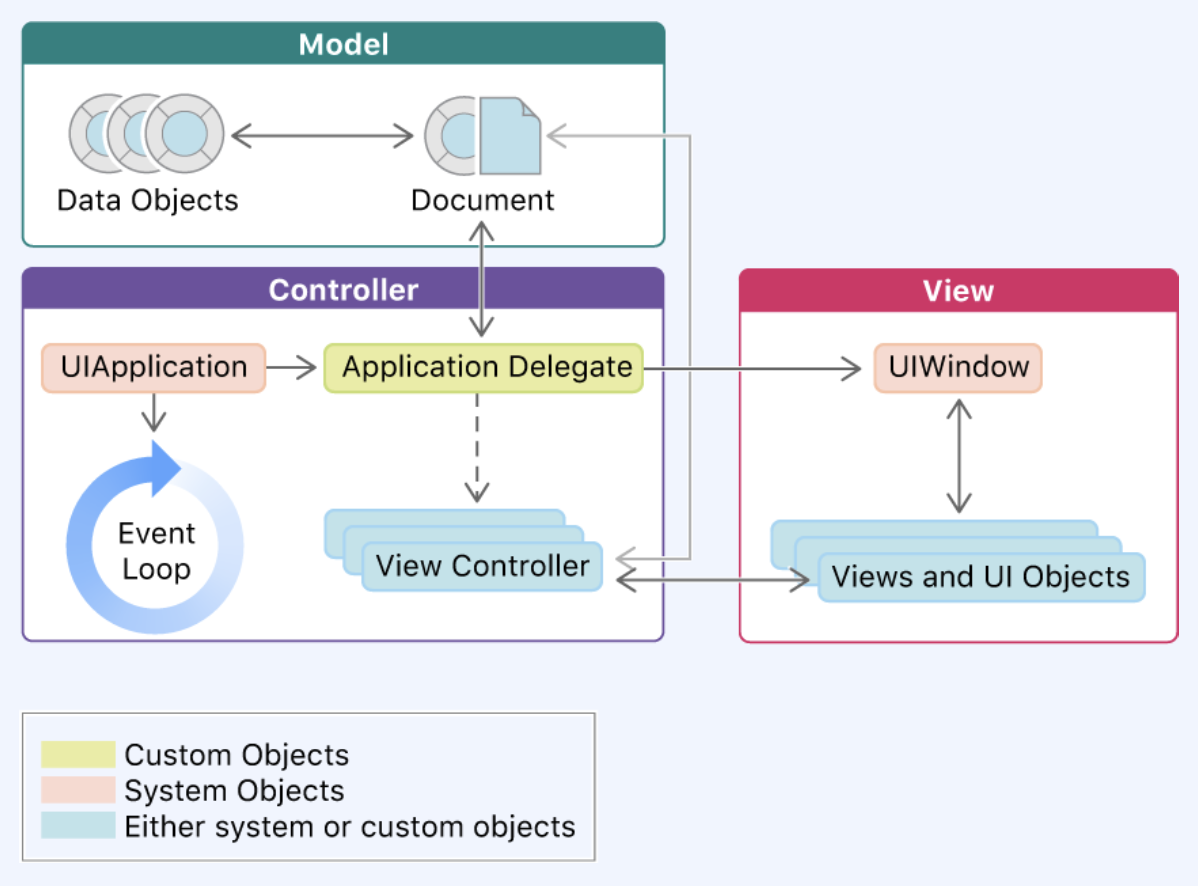 UIKit 앱의 구조는 MVC 디자인 패턴을 사용한다.
