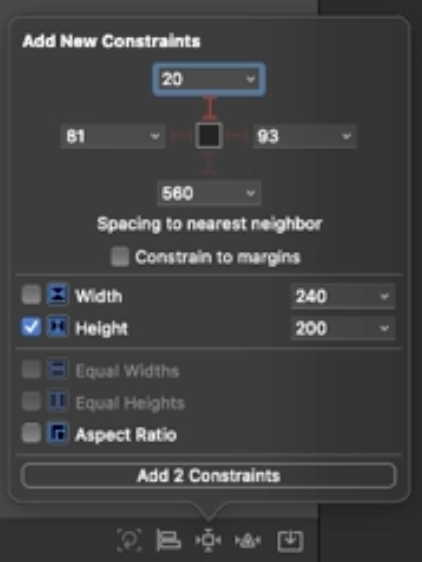 제약 조건(Constraints) 을 이용하여 뷰의 크기와 위치를 지정하는 것