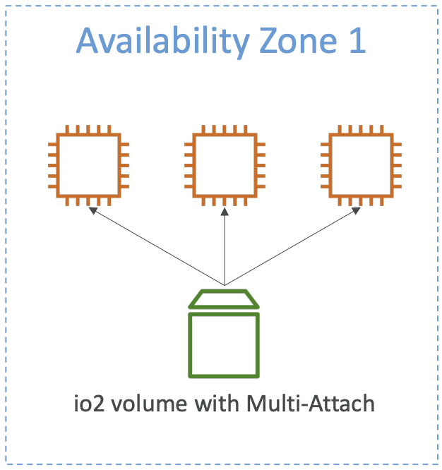 · 다중 연결 기능이 활성화된 io2 Volume이 있을 때, 이 볼륨을 여러 개 인스턴스에 연결 가능(Same AZ)