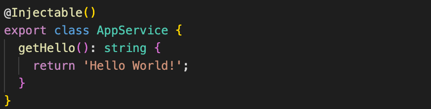 @Injectable() 데코레이터를 통해 AppService 를 Provider 로 만든 것이다.