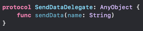 1) ⓒ ViewController 에서 데이터를 전달하는 메서드를 포함하는 protocol 을 선언한다.
